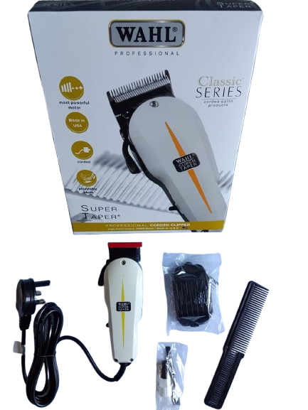To complete your kit we ve added the rechargeable Super trimmer, the perfect partner to the Wahl Super-Taper clipper. The Super trimmer is ideal for hair lines, sideburns, lining, facial hair, detail work and touch ups; it has 100 minutes operation time on full charge, is super quiet and light weigh for easy handling and has high precision snap on/off chrome plated blade to make cleaning and maintain your blade an ease. The super trimmer comes complete with a variable attachment comb offering cutting lengths from 3-6 mm.